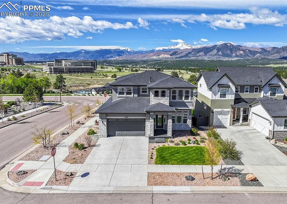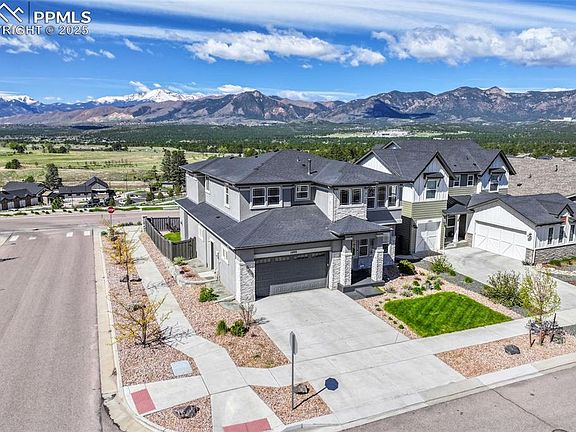 2018 Parade of homes winner of all categories and flagship model of Brookstone homes.  Backing to unobstructed views of the Air Force Academy and Pikes Peak.  Watch the Thunderbirds perform aerial acrobatics from the enormous covered deck.  Established builder made this castle his own as the build-out of The Farm neighborhood was completed.  This home comes with all the extras you would expect from a parade winner and model home showpiece.    Featuring 4 spacious bedrooms, 4 bathrooms, 2nd story loft and an office with custom double barn doors.   Welcoming you home with a two-story entry, formal dining room, and a chefs dream kitchen with quartz counter tops, double ovens, gas cook top, large 75sq ft island, built in wine cooler, and walk in pantry.  The open layout flows seamlessly into the inviting living room with a cozy gas fireplace-perfect for entertaining or everyday living.   Finished walk-out basement with 9ft ceilings, game area, entertaining space, private guest suite and full bath complete this area.  Take a walk outside to the covered patio great for relaxing on those cool summer nights enjoying the unmatched views of Pikes Peak.  Oversized garage with extra 12’x6’ storage and included shelving.  NEW ROOF WITH CLASS 4 SHINGLES.  This is the home you have been waiting for!