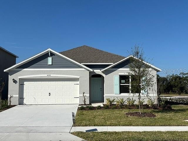 The popular one-story Cali floorplan offers 4-bedrooms, 2-bathrooms, a 2-car garage with 1,882 sq ft of living space. The open layout connects the living room, dining area, and kitchen, ideal for entertaining. The kitchen boasts quartz countertops, stainless-steel appliances, a walk in pantry and a spacious island. The four spacious bedrooms gives flexibility for various lifestyles. The primary suite located in the rear of the home features a private ensuite bathroom with dual sinks, a separate shower, and a walk-in closet. The remaining three bedrooms share one well-appointed bathroom, making morning routines a breeze. Laundry room is convenient to all bedrooms. This all concrete block construction home also includes smart home technology for control via smart devices. *Photos are of similar model but not that of exact house. Pictures, photographs, colors, features, and sizes are for illustration purposes only and will vary from the homes as built. Home and community information including pricing, included features, terms, availability and amenities are subject to change and prior sale at any time without notice or obligation. Please note that no representations or warranties are made regarding school districts or school assignments; you should conduct your own investigation regarding current and future schools and school boundaries.*