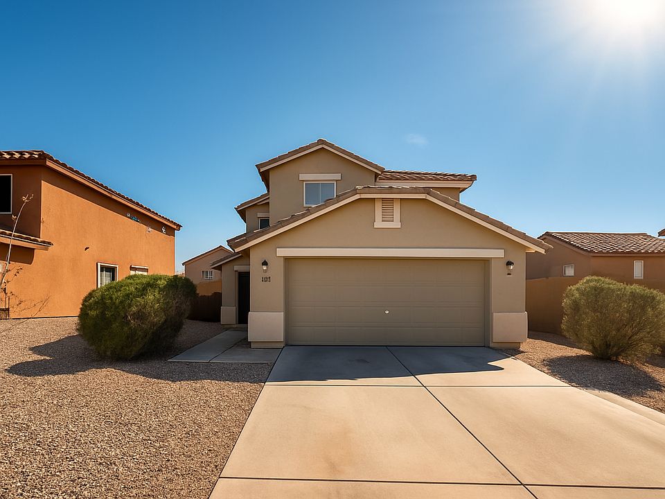 Welcome to this spacious 4-bedroom, 3-bath home in the desirable Sundance neighborhood of Buckeye. Featuring an open floor plan, tile floors downstairs, a large kitchen with breakfast bar, and a flexible loft upstairs perfect for a home office or play area. The main-level bedroom and full bath offer added convenience. Enjoy a low-maintenance yard with a covered patio, ideal for relaxing or entertaining. Close to parks, schools, and shopping with easy freeway access. 2-car garage, 2,267 sq ft. Move-in ready!