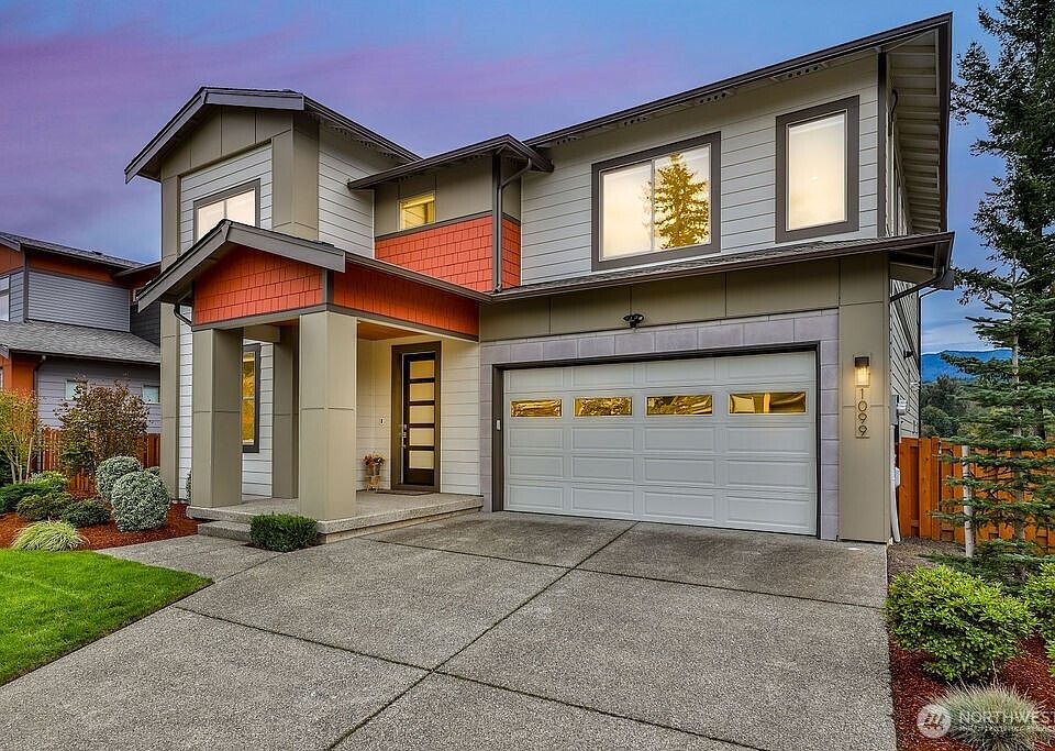 HUGE $30K CREDIT! Use it to fund a 2-1 rate buydown to enjoy 2 yrs of substantially lower payments- ask how. Experience sweeping mountain views from this stunning modern home in North Bend. Expansive windows flood the open layout w/ natural light, while a chef's kitchen w/ premium appliances, breakfast bar & sleek finishes anchor the main living area. Main level bdrm & 3/4 bath offer ideal guest or multi-gen living. Upstairs, a spacious bonus rm provides flexibility for work, play or media. Thoughtfully updated w/ solar panels, whole home battery backup & EV charging for sustainable living. Newly landscaped backyard creates a private retreat, perfect for relaxing. Just minutes to downtown NB, schools, trails & endless outdoor recreation.