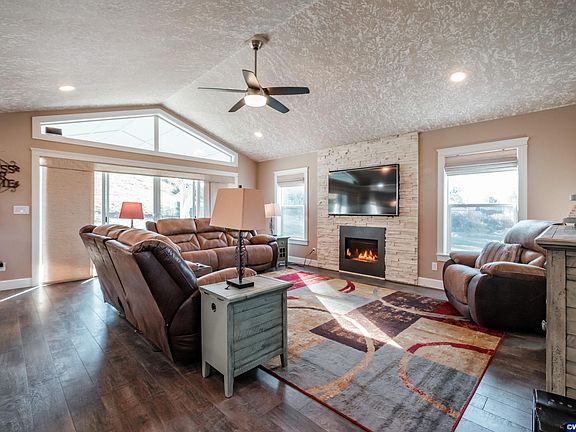 Beautiful home on 1.46 acres!Great room w/vaulted ceilings,gas FP & access to lrg covered patio & outdoor living space.Kitchen w/SS appl, dual oven,pot filler,granite counters,island,breakfast bar,custom cabinets w/pullouts & walk in pantry.Master w/lighted tray ceiling,bath w/elevated vanity,dual sinks,jetted soaking tub,stand alone shower & huge walk in closet.Office,lrg laundry rm,garage workshop.RV pad,50/30 amp service w/RV dump.Assumable VA loan at 3.85% contingent on the sellers VA being released!