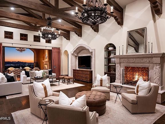 Throughout, appreciate refined elegance with nine charming fireplaces, custom wood flooring and distinguished beamed ceilings, gracious brick and tile accents and a wet bar with wine wall reflect the home's attention to detail and artistry. Every space tells a story of craftsmanship, comfort, and connectionto the desert, to the sky, and to the extraordinary lifestyle that defines Silverleaf.