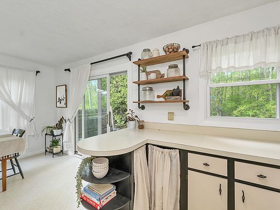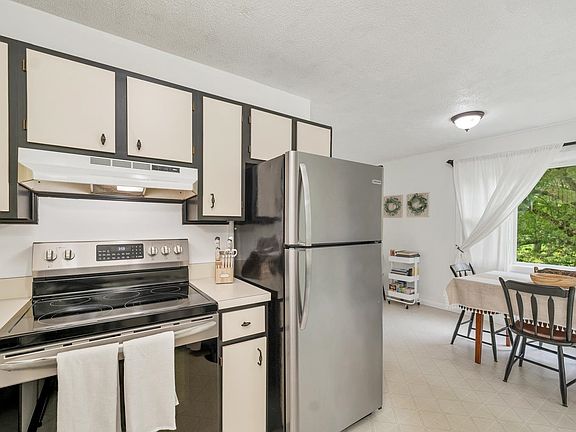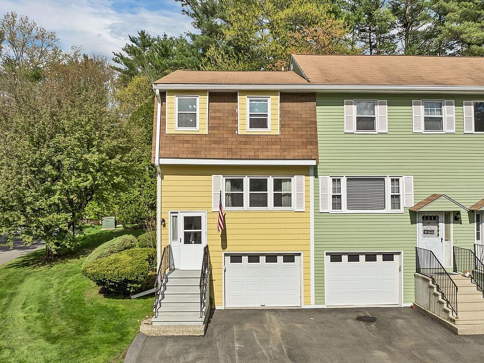 Welcome to this well-maintained 2-bedroom, 1.5-bathroom end-unit townhome in the desirable Derry Village Condos. This spacious home offers an open-concept kitchen featuring stainless steel appliances and ample counter space, flowing into a bright dining area with sliding glass doors that lead to a private back patio overlooking a peaceful, wooded setting. The main level also includes a generous living room and a convenient half bathroom, ideal for guests. Upstairs, you'll find two roomy bedrooms and a full bathroom, including a primary bedroom with double closets. The finished lower level provides flexible space—perfect for a home office, family room, or additional storage—as well as direct access to the one-car garage. Additional features include updated windows, modernized bathrooms, and attic storage with the potential to add a loft. Residents enjoy amenities such as an inground pool, and the location is ideal for commuters with easy access to major routes and local conveniences.