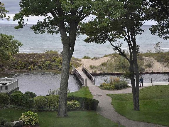 The Inn offers a prime Lake Michigan waterfront location where you will enjoy the beach, lake and sunset views, the Beach Club and Crystal River. This beautifully restored two bedroom two bath unit is luxuriously furnished with the advantages of air conditioning, a gracious lobby, elevator, and shared laundry in the building. Features include gas fireplace, sleeper sofa, granite countertops and stainless steel appliances. Master bedroom has a private bath and gorgeous Lake Michigan views. Second bedroom has twin beds. With fractional ownership, you visit every other month and each owner owns six weeks throughout the year. Weeks rotate on a yearly basis. You also have the option of renting out weeks that you can't use through the resort Rental Management Program, or exchanging weeks for other locations through RCI. Fractional ownership is very affordable with low association dues of $175 per month. Just unpack your suitcase and enjoy all that the Homestead, Glen Arbor, and the Sleeping Bear Dunes offer.