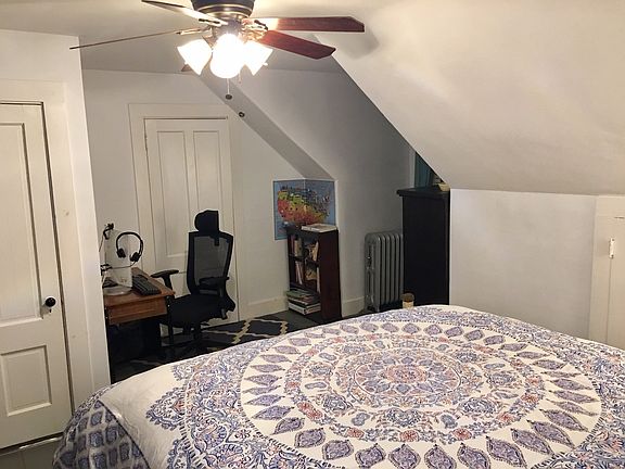 Why pay rent when you can own this wonderful half duplex on a lovely, quiet street. More like a single family than a condo and no HOA fee! Enjoy cooking in the beautiful kitchen with large pantry and movable island. Plenty of room in the spacious, sunny, dining room; living room features hardwood flooring and ceiling fan. Owners take pride in ownership & have done many upgrades throughout including new tile bathtub/shower and fresh paint. Enjoy free electricity and all the benefits of credits from the state SREC from the $20,000 solar panels (seller paying off panels so they're free to you), only 3 years old. High ceilings and ceiling fans throughout the home. Three bedrooms on second floor complete the inside including a master bedroom with walk in closet. Enjoy your own fabulous wrap around porch to savor the privacy of your own large yard and wooded setting which is home to a variety of birds (hummingbirds, cardinals and more), and deer. Have fresh strawberries & red raspberries in the summer and beauty and peace all year. Welcome Home!!