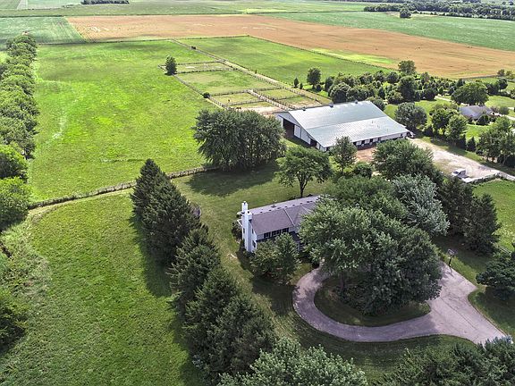Wonderful Elgin Horse property offering miles of close by riding trails, yet minutes from town, metra and I-90. In addition, this property is adjacent to Kendall Road Equine hospital and many nearby top rated horse show venues. Offering a fully updated family farmhouse, nestled on almost 15 acres with circular drive. Oversized great room, foyer and dining room. Immense Owner's Suite overlooking pasture and bridle path. This equestrian facility boasts a Morton building and features a temperature controlled oversized club room/meeting space with separate office, kitchen, laundry and 2 bathrooms. This portion of the building has both heat and a/c. Wash stall with hot and cold running water, and separate tack room. Including eight paddocks, 11 heated stalls measuring 12' X 12' w/mats, indoor arena is fully insulated and is approx 130' X 72'. Outdoor arena is approx 100' X 150'. Two grass pastures and 11 acres of hay. Large parking lot with separate driveway to access the barn. MUST SEE!
