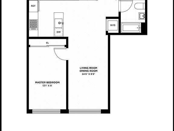 The king-size bedroom is a rare find, complete with an oversized walk-in closetsomething you almost never see in a NYC one-bedroom. The spa-inspired bathroom offers a calming retreat with porcelain and marble tiles, a Scavolini vanity, premium Toto and Grohe fixtures, and a deep soaking tub.