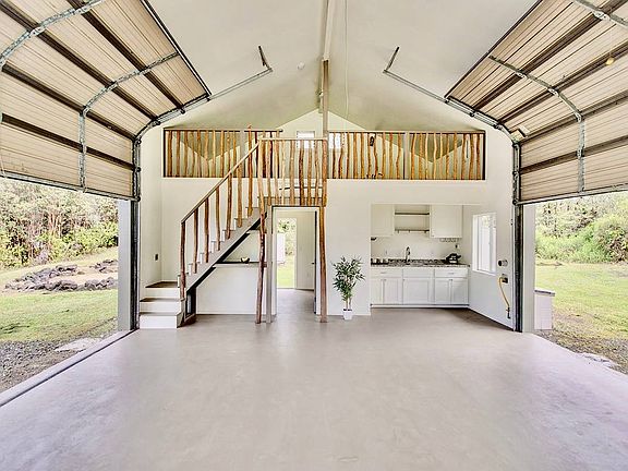 Well-built FULLY PERMITTED home is unique with two giant metal roll-up doors so this structure could be easily converted into a large garage/workshop with openings big enough to store large equipment or a boat! Extremely high ceilings!