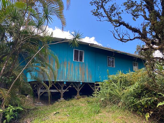 This home needs some elbow grease to make it shine again but has tons of potential! It is located on a beautiful 1 acre piece of property in Eden Roc, Mountain View. A long driveway takes you to the back of the property where you will find a cute permitted 3 BD / 1 BA built on posts and piers, on top of a small mount, for a better breeze. The house is surrounded by native forest with Ohia trees, ferns and wild orchids. There is also an inviting and decently large meadow all the way in the back right next to the house. The front half is just native forest as well for added privacy. County records show 656 sq. ft. but the house probably has more than 1000 sq. ft. in living area. There is still a balance with HELCO for a bit more than $1000 with the SSPP program. Part of the roof or all of it looks like it needs to be fixed or replaced, with moldy areas inside. House is sold As-Is.