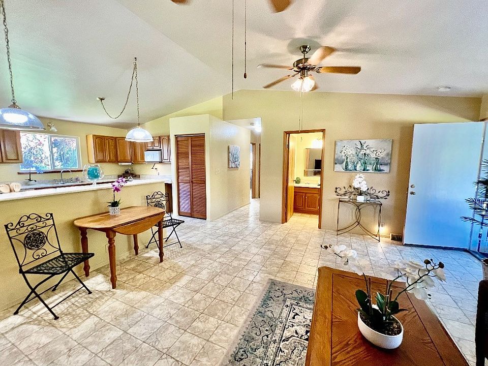 Lovingly maintained home has only had one owner!! This quality-built home is located in an area of old-growth and healthy native Hawaiian hardwood Ohia Trees and a nearly square, fully fenced acre lot! At 167' by 260' it is a great shape and is beautifully landscaped!