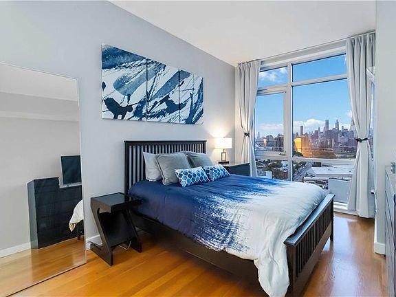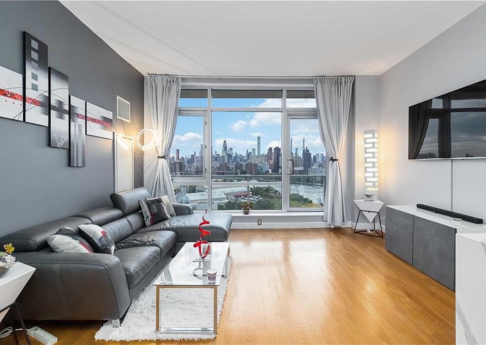 Come see this stunning waterfront condo offering panoramic city and skyline views! Experience elevated living in a sophisticated residence featuring soaring high ceilings and expansive floor-to-ceiling windows that flood both the living room and bedroom with natural light. Enjoy a morning coffee or an evening glass of wine on your private balcony overlooking the breathtaking Manhattan skyline. This home features elegant hardwood flooring throughout, a gourmet kitchen with a quartz waterfall counter top and modern European cabinetry, and a spa-inspired marble bathroom. Additional highlights include an in-unit washer and dryer and pet-friendly doorman building. A separately deeded premium parking space is included in the price—a rare bonus compared to other buildings in the area. This exceptional unit combines style, comfort, and convenience in one unbeatable package. Schedule your private showing today—opportunities like this don’t last long!