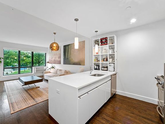 This large one bedroom condo features pristine oak hardwood floors and an open kitchen with professional grade appliances, custom cabinetry and quartzite counters. The oversized bathroom features upgraded lighting, a deep soaking tub and an attractive floating vanity. Rounding out the features of this beautiful home are a washer/dryer, two HVAC units, custom designed blackout shades from the Shade Store, and thoughtful built-ins that enhance the utility of the space. Perhaps the best feature of this home is the protected open south-facing view of Murray Park, letting in direct sunlight all day long.