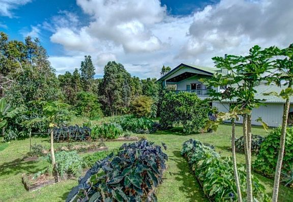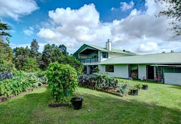 Come experience the peaceful setting surrounding this huge 6 bedroom house. The downstairs has a large living/family area with working fireplace and large country style kitchen, which was completely remodeled in 2009, with room for big groups to eat. Also downstairs in the original building are 2 bedrooms and 2 baths. The large 2 story addition, which was completed in 2005, has 3 bedrooms downstairs and an oversize 2 car garage which is currently being used as an artist studio. Upstairs is the surprise master suite with spacious bedroom with hidden walk through closet, spa style bathroom, office area, kitchenette and living area. Through 2 sets of double French doors is a 12x28 lanai overlooking the lush gardens with a view of Mauna Loa. Out the bathroom window is a view of Mauna Kea. Ceilings are vaulted for an even roomier feeling. There is also a cottage on the property that is also being currently used as additional artist studio. This gives a total of over 5000 square feet of living space under roof. Amazing! The three, fully fenced acres, have been hand cleared and lovingly planted. The shade garden has many anthuriums, bromeliads, and orchids planted with spots to sit, relax and enjoy the peace and serenity. Lush gardens behind the house boast strawberries, artichokes, taro, rhubarb, blueberries, papaya, sweet potatoes and more. There are large avocado trees, bananas, yacon, and a variety of citrus. Many fruit trees have been planted, adjacent to the vegetable gardens, with varieties too numerous to name. Beside and behind the house are 3 greenhouses and a large pond. There are tilapia in the pond and it is all set and ready to develop an aquaculture garden. Grow orchids and vegetables in the same spot. All this and more. You must visit this property to truly understand what an incredible find this is.