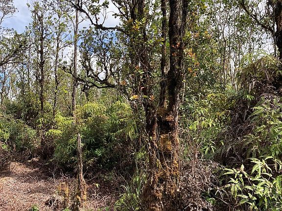 -Eight cypress trees have been planted: six at the rear of lot, and two in the front. This tropical acre of native Hawaiian forest is lightly wooded. The ʻohiʻa lehua trees, uki (a native sedge), hapuʻu ferns, and other ferns provide a beautiful lush natural landscape. Two young koa trees were planted.