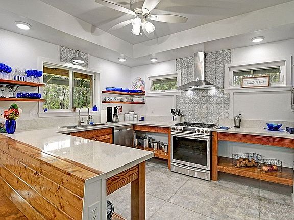 This peaceful 4-bedroom, 2-bath home, built in 2019 and thoughtfully remodelled in 2026, is truly immaculate. Set back from Kaleponi Drive for added privacy, the home is surrounded by approximately three acres of mature ?ohi?a trees, along with coffee, banana, guava, and other fruit trees, creating a lush and private forest setting. Enjoy relaxing on the spacious front porch, taking in the sounds of native birds and the beauty of the surrounding rainforest.