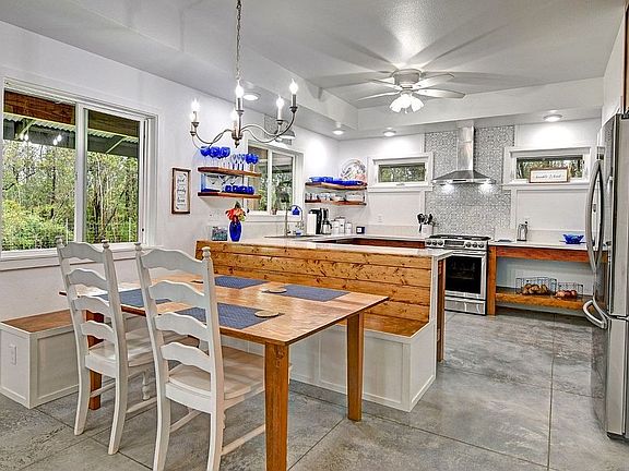 The home was thoughtfully designed for comfortable, easy living, with an open layout, durable acid-washed concrete floors, and large windows that bring the rainforest indoors. The kitchen is a joy to use, with plenty of counter space, storage, and a layout that naturally brings people together.