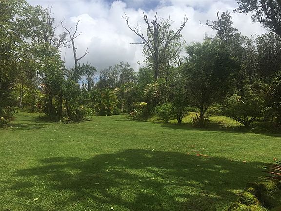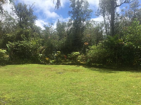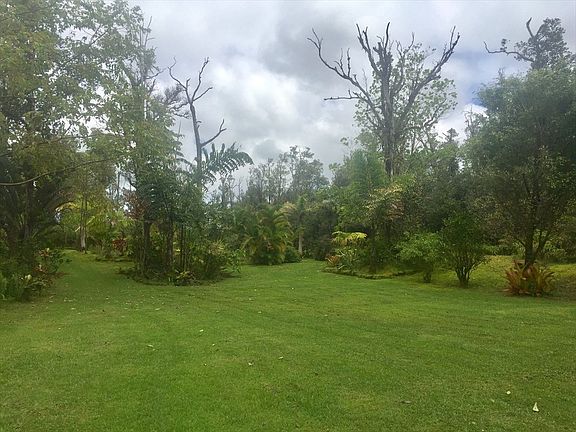 Beautiful park like landscaping already developed and meticulously maintained with a variety of established palms, rainbow eucalyptus, orchids, anthuriums and other tropical foliage. Palm and lava rock lined driveway with gate for privacy. There are a three leveled and cleared areas that are ready to build on. Seller will not pay for staking/survey.