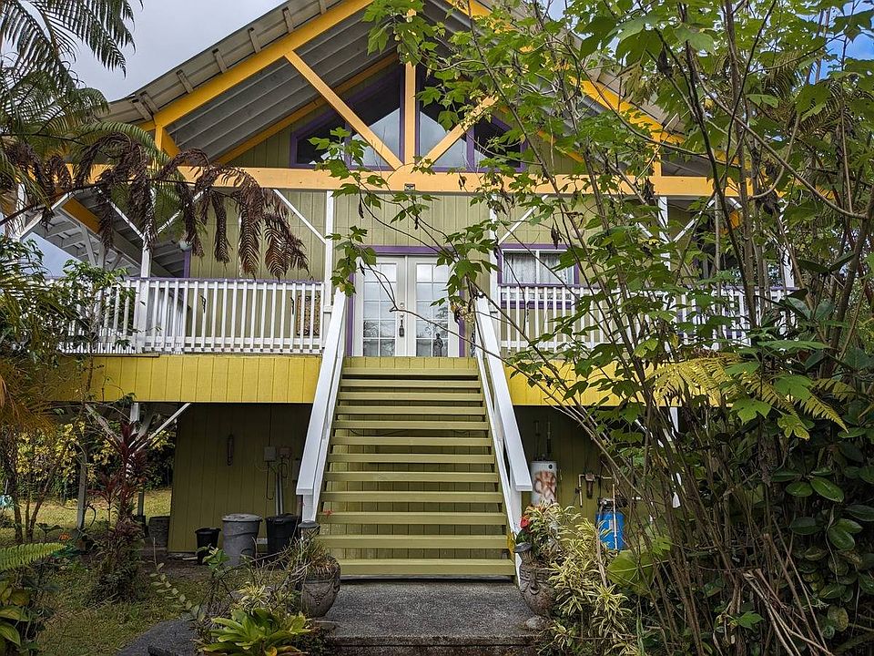 The well-appointed kitchen and dining area are a delightful spot to entertain guests. A porch swing outside the kitchen door gives you a view of your beautiful yard while sipping morning coffee. Set back from the road via a winding driveway, this home has the privacy you've been looking for. All within a 25 minute drive to Hilo.