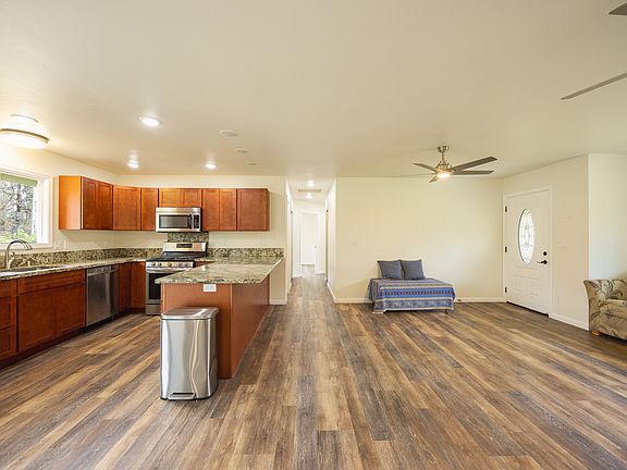 Enter through the 2-car carport directly into the laundry area, which leads to the dining and kitchen area. The kitchen is fully equipped, including a dishwasher and a gas powered range, perfect for those who love to cook, and the large, open living area makes entertaining easy!