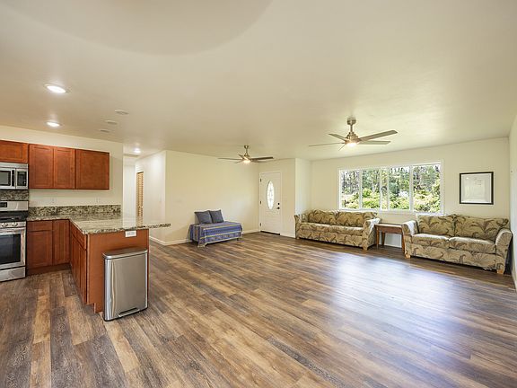 Here is a rare opportunity to own a gorgeous 3-bedroom, 2-bath home and two side-by-side lots (with MLS 721827), providing a total of four acres, privately nestled in Fern Acres Subdivision. Located on PAVED Plumeria St, this gated home is situated on the front 1/3rd of the parcel, approximately 200' from the road.