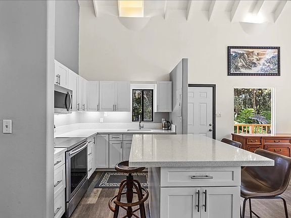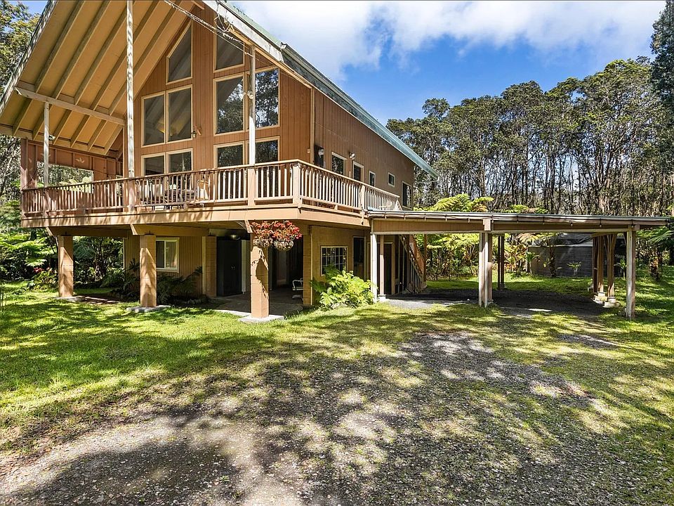 Minutes From Volcano National Park this furnished Custom home is the ideal base for exploring or commuting to either side of the island. A spectacular 20 foot window provides views of the surrounding Forest. Featuring 2 spacious Bedrooms, 2 Full Baths, and a Loft that converts to a 3rd bedroom, this island home is the perfect retreat. All utilities and WiFi included. 1-3 month rental preferred.