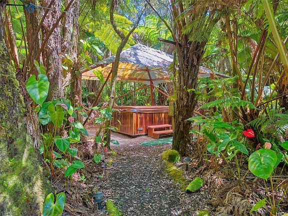 Turn-key, permitted bed-and-breakfast retreat in Volcano, Hawai‘i—successful income-producing.Just across from Volcano Village, this beautifully crafted property spans a lush 20,000 SF lot and includes a main home and separate guest house—ideal for rental income or multigenerational living. Masterfully constructed, impeccably maintained and fully furnished with quality finishes, including cork and ceramic flooring, full baths, corner windows, and thoughtful amenities like a microwave, coffee maker, toaster, refrigerator, and high-speed WiFi.Enjoy the serene ambiance of native and ornamental landscaping, winding garden paths, and a private hot tub gazebo—perfect for relaxing under the stars. Sustainable features include solar hot water panels, catchment water systems, and multiple water heaters. Lot dimensions are 100’ x 200’ at approximately 3,600’ elevation, offering a cool, peaceful climate year-round.Premium Investment Property generating $11,000 in the best months, low vacancy rate. Moving to California, Make Seller a cash offer. Years of income records. Near National Park and FOUR very popular. RENTABLE UNITS