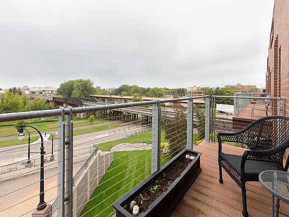 Heated indoor parking with this uptown condo located in downtown Moorhead. This location has many features close by- restaurants, shops, parks, beautiful river views and the skyline of Fargo! Open floor plan has a warehouse feel w/brick walls, post & beam, 14' wood ceilings, wood laminate flooring, stainless appliances with a gas fireplace in the living space. Rubber membrane commercial roof. Most Furniture & Art available for purchase Association covers snow, lawn, building maintenance & Insurance, W/S/G-Owner/Agent