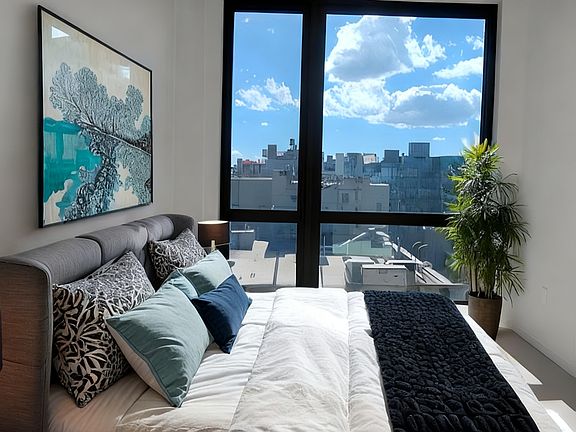 Discover boutique living at Enzo, Long Island City's newest condominium. This exquisite 1-bedroom, 1-bathroom residence features a private balcony with stunning Manhattan and Queensboro Bridge views. The open-concept layout boasts wide plank floors, an elegant kitchen with Bosch appliances, and an in-unit washer/dryer. Enjoy serene landscaped courtyards and a rooftop terrace with panoramic city views. Located moments from the Court Square transit hub, parks, Trader Joe's, and Vernon Boulevard's dining scene. Experience the best of LIC in this stylish retreat.