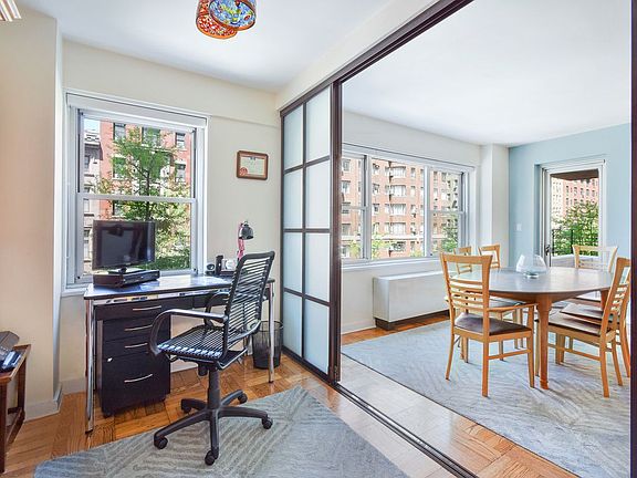 Welcome to 4H, formerly Buddy Holly's home! This gracious and renovated 1 bedroom / convertible 2 bedroom apartment features beautiful tree-lined views and western sunlight overlooking Fifth Avenue. A gracious entry foyer opens to the grand living room with a separate den/office. The spacious balcony with a table and chairs is accessible from the living room and has beautiful views of the Empire State Building, the Freedom Tower and Washington Square Park. The kitchen features high-end Viking stainless steel appliances, granite countertops with glass mosaic backsplash and the bathroom features a stand-alone shower, modern tiling throughout with a heated towel rack. There are four large walk-in closets and in-unit washer/dryers are permitted with board approval. One storage bin transfers with the apartment. The Brevoort is one of the city's most sought-after, pet-friendly, postwar co-ops. Amenities in the building include; 24-hour doorman, concierge, resident manager, gym, parking garage, circular driveway, bike room, on-site laundry and additional storage. The building has been updated with a number of green features, including facade work, window replacements, planted rooftops, supplemental emergency power and much more. Situated in the heart of Greenwich Village on the Prime Gold Coast, this mid-century modern co-op is within a few blocks of the cities best restaurants including Shuko, Minetta Tavern, Carbone and Nix. The Brevoort offers convenient access to major transit lines including the A/C/E, B/D/F/M, 4/5/6, N/Q/R/W, 1, L and PATH trains.