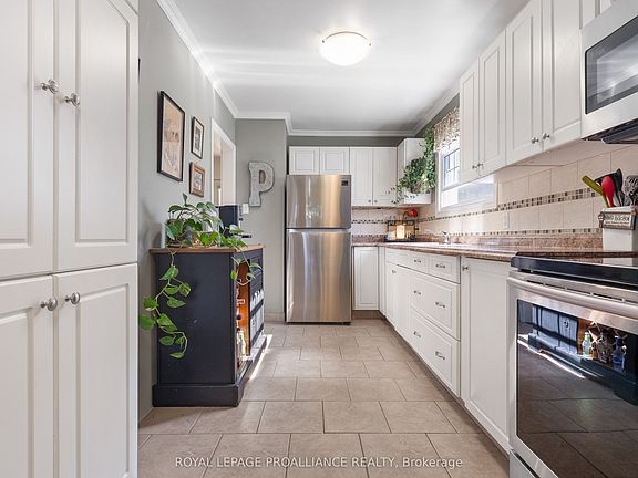 Welcome to this beautifully updated 1.5 storey home in one of Belleville's most desirable east-end locations. Offering a warm blend of comfort and modern upgrades, this property is move-in ready and perfect for families, first-time buyers, or anyone looking for a home close to all the conveniences the east end has to offer. Step inside and enjoy the main floor's inviting layout, featuring new flooring throughout. The bright kitchen is practical and well laid out, offering plenty of natural light and storage. The cozy living room, complete with an electric fireplace and large picture window, makes the perfect spot to relax. A separate dining room and a refreshed 4-piece bathroom complete the main level. Upstairs, you'll find two comfortable bedrooms. The fully finished basement is a great extension of living space, complete with built-in surround sound and an additional bedroom, ideal for family movie nights or a private guest suite. Outside, the new back deck overlooks a fully fenced yard, offering privacy and space for kids, pets, or entertaining. Recent upgrades include new siding, windows, eavestroughs, downspouts, shingles, flooring, and bathroom, ensuring peace of mind for years to come. Enjoy the convenience of walking to trails, the hospital, grocery stores, schools, and all the east-end amenities, with the Bay of Quinte just a short stroll away. This home combines charm, modern comfort, and an unbeatable location. Don't miss your chance to make it yours! Ask for the extensive list of improvements!