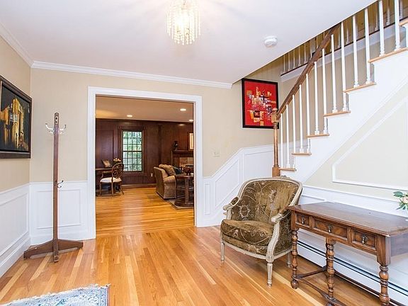 This expansive 4,502sq.ft. family home on a quiet double cul-de-sac surrounded by wooded conservation land in the desirable town of Andover only 30 minutes to Boston offers the amenities, privacy, & outdoor space important to young families. Appealing features of this two-story center entrance home include a large rear deck, oversized 2-car garage, family gathering spaces in the library-living room, the vast great room, the family / hearth room & in the finished basement. The new chef's kitchen has a Wolf gas stove, Sub-Zero refrigerator, Bosh dishwasher, granite counters & a stone mosaic backsplash. 6 bedrooms include; 1 in the walk-out fireplaced basement & 5 on the second floor. There are 4 full & 2 half baths, including 2 new bathrooms featuring exotic stone. Oak & Rosewood flooring bring elegance, as does mahogany paneling. 3 fireplaces are augmented by a pellet stove in the family room. This home is spacious, warm & updated where it matters.