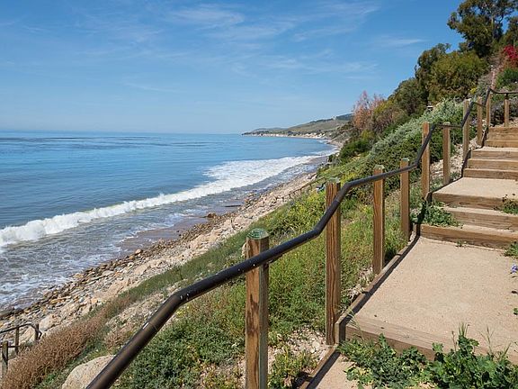Best beach front value!Continue to show for back ups. Spectacular gated beachfront home with unsurpassed ocean, island & coastal views with private steps to the sand. Gated community with rural, peaceful feel & a rare opportunity to own a piece of the Gaviota coast.South facing home with wrap around decks, charming wood floors, open floor plan, high ceilings and massive stone fireplace.