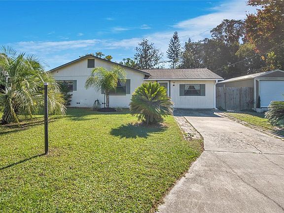 Welcome to this cozy 3-bedroom, 1-bathroom home in the heart of DeBary! Featuring WOOD and TILE flooring throughout and a SPACIOUS FULLY-FENCED backyard with THREE storage sheds, this property offers comfort, character, and an expansive outdoor space. As you enter, you're greeted by the main living area. To your right sits the primary bedroom, complete with a stylish BARN DOOR and walk in closet. This room also provides access to the spacious laundry/storage room for added convenience. Back through the main living area, you'll find the inviting living room. To the left, a hallway leads to TWO additional bedrooms and a shared full bathroom. The kitchen features SOLID WOOD cabinetry, STAINLESS STEEL, classic black appliances, and ample storage space - perfect for everyday living. Just beyond the kitchen is the open dining area, truly the heart of the home. Sliding glass doors lead out to the SCREENED-IN patio, offering a peaceful place to unwind or entertain. Step outside to the EXPANSIVE backyard - FULLY FENCED, dotted with mature trees, and equipped with THREE storage sheds. There's more than enough room for your pets, gardening, or creating your dream outdoor oasis. Two of the sheds have electricity, and the main shed includes an office/flex space with a wall A/C unit, ideal for a workshop, studio, or hobby room. The second large shed includes an outdoor sink area and can be converted into a detached mother-in-law suite! Additional updates to the home include a 2018 roof, a newer A/C system (1.5 years old), a recently pumped septic tank(1.5 years ago), new electrical panel, and new fans/updated light fixtures wired for security cameras. This home has NO HOA and is ideally located just minutes from the St. Johns River boat ramp, the DeBary SunRail Station, top-rated schools, shopping, dining, Konomac Lake, Blue Spring State Park, and Lake Monroe. Don’t miss your chance to make this DeBary gem your own!
