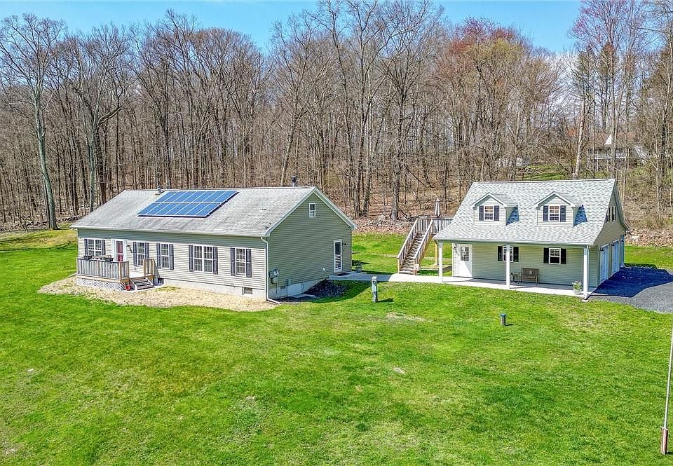 Welcome to this meticulously maintained 3-bedroom home boasting elegant 9' ceilings and a thoughtfully designed open layout. Upon entering, you're greeted by a spacious living room and dining room, offering abundant space for both entertaining and unwinding. Premium engineered flooring flows throughout the home, adding to its allure. Step into the heart of the home, a kitchen adorned with Corian countertops, maple self-close cabinets, and a charming peninsula with seating for four. The kitchen also features a delightful backsplash, ample cabinetry, dual sinks, stainless steel appliances, a coffee bar, built-in desk area and an inviting island with two additional bar seats, all complemented by a convenient pantry area. Adjacent to the kitchen is a cozy family room, highlighted by a wood-burning stove with a blower and floor-to-ceiling stone work on the fireplace, perfect for chilly evenings. Sliders lead out to the patio area, where a pergola with lighting sets the scene for outdoor gatherings and relaxation. On one side of the home, you'll find a full bathroom and two bedrooms, each adorned with ceiling fans. On the opposite side awaits the master bedroom, offering privacy and comfort. The master bathroom features pocket doors, dual sinks, a shower, vinyl flooring, and a luxurious soaking tub. Additionally, this home boasts a gorgeous legal accessory apartment above the garage, providing an additional 525 sqft of living space not included in the 2,072 sqft of the home. The apartment features a full bathroom with a fiberglass insert and pocket doors, a stunning kitchen area with white cabinetry, granite countertops, vinyl flooring, and recessed lighting. A built-in wall unit in the living area maximizes storage space. This extra square footage would also work well for a home office, workout room, additional living space, etc. Step outside to discover a composite deck measuring 12x12 with composite railings, overlooking a beautiful backyard retreat. Here, an above-ground pool with a solar cover and new decking invites you to cool off on warm summer days. A patio area with a pergola offers a tranquil space to relax, while a path leads to a charming gazebo – the perfect spot to unwind from the day's stresses. Additional features include: central air (compressor is 2 years old), pull stairs leading to a floored attic with plywood, providing ample storage space, whole house filtration system, laundry room off the kitchen, transferable solar panels offsetting the electric cost. Within 15 mins to I-87 and I-84. 20 mins to New Paltz for fine dining, Mohonk Mountain House, 20 mins to Stewart International Airport. Wallkill School District Additional Information: ParkingFeatures:2 Car Detached,
