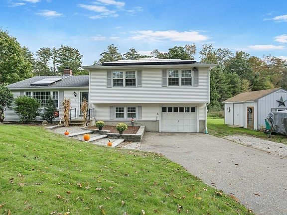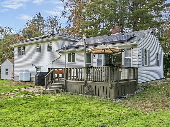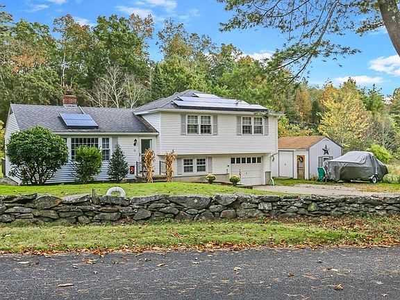 Multiple Offers Highest & Best by 10/20 @ noon. Walk up the gorgeous granite and paver walkway through the front door & you'll enter the main living area comprising the living room, dining area & kitchen. The beautiful living room with brand new carpet has a propane fireplace that heats the entire house and large windows letting in lots of natural light. The kitchen, with crisp, freshly painted cabinets, was updated 6+/- years ago. The kitchen & dining area are bright and cheerful & open to the 10x13 deck overlooking the level park-like backyard with babbling brook & surrounded by historic stone walls. Off the main level & up a few steps you'll discover three good size bedrooms & full bath with two linen/storage areas. The main bedroom has a 1/2 bath. Off the main level down a few steps find a cozy family room, laundry room, storage area and interior access to the 1 car garage. Solar panels help with electric utiltiy costs, buyer assumes contract w/ credit check.