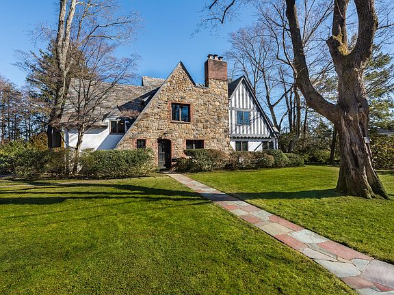Beautifully restored, updated and maintained English Tudor filled with charm and character. This exceptional property lies on over half an acre of lush grounds complete with an expansive backyard with raised deck and patio. It is located in the Sunnyridge neighborhood in Harrison, walk to schools, town and trains. The 5-bed, 4.1-bath home boasts 3,149 sq ft of light-filled living space with high ceilings and immaculate original oak floors. A large center hall leads to the formal living room with wood-burning fireplace, library, elegant dining room that opens to the deck, eat-in kitchen, mudroom and 4 season room. On the upper level is a luxurious master suite, which includes an ensuite bathroom and dressing room with custom built-ins. You'll find 3 more bedrooms and 2 additional baths on this level. This home offers modernized bathrooms, private guest suite, huge lower level with laundry room and storage/playroom space, walk-up attic and 2-car garage. Don't miss it!
