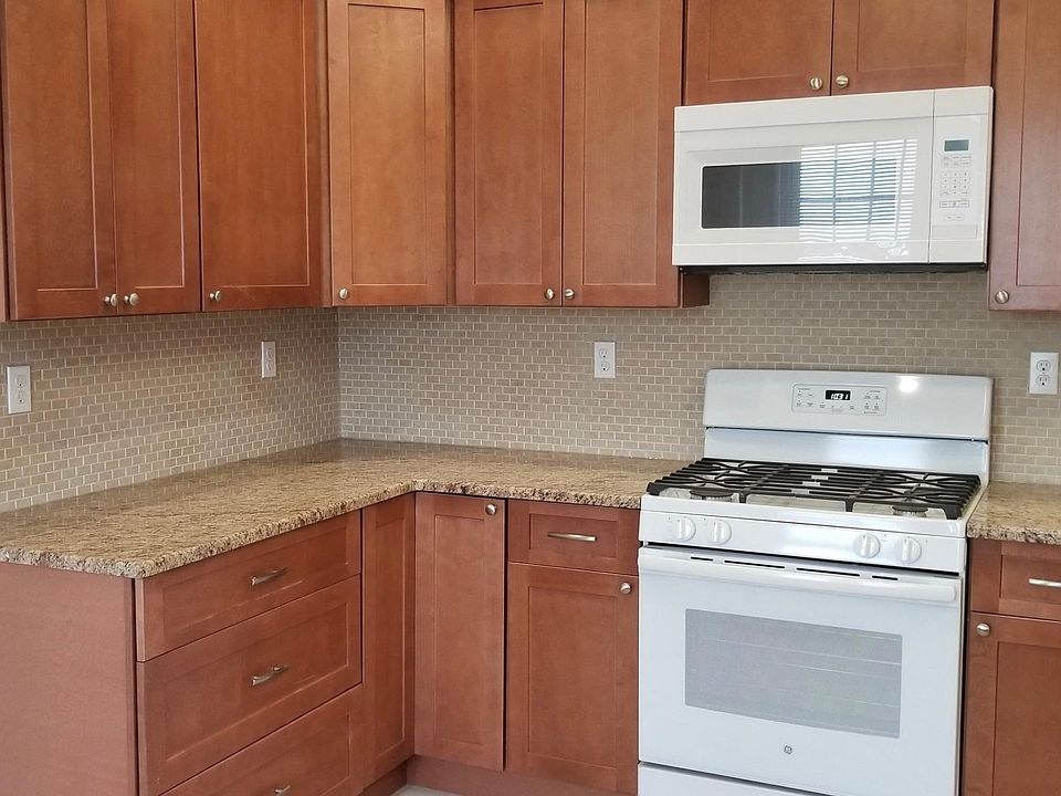 FULLY renovated. Large 850 square foot 2nd floor apt in Bloomfield (near Montclair border). LR, DR, 2 bedrooms, full bath and eat in kitchen. Granite countertops, new wood cabinets with plenty of storage and new appliances in kitchen (stove, fridge, microwave and dishwasher), all new flooring in kitchen, bathroom and hallway; hardwood floors in bedrooms, LR and DR; LED lighting; w/d hookup and storage in basement. Bus and train transportation to NYC nearby. Available immediately. Tenant pays gas and electric