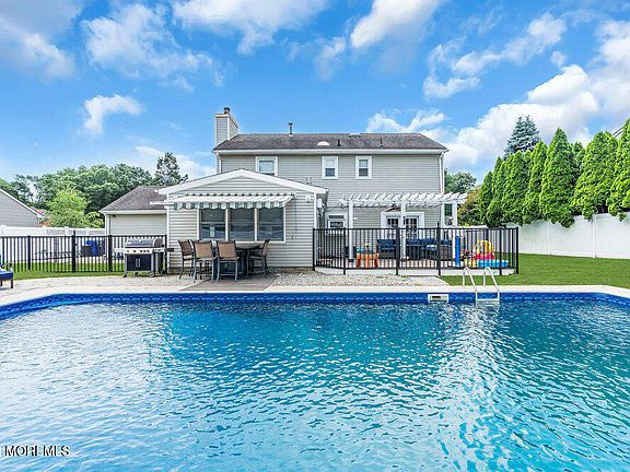 Welcome to this exquisite 4-bedroom Colonial nestled in the sought-after Bay Bridge Village neighborhood, adjacent to Point Pleasant. This home blends classic charm with modern amenities, offering a perfect blend of comfort and style. Step into the spacious kitchen featuring updated cabinets, stainless steel appliances, and a convenient center island, ideal for culinary enthusiasts and gatherings alike. The adjoining dining area, complete with a cozy fireplace, seamlessly transitions into the sunlit family room. Sliding glass doors lead out to the meticulously landscaped yard, complete with a Saltwater inground pool—a haven for outdoor entertaining and relaxation. The master bedroom retreat boasts a beautifully renovated bathroom with a stall shower, complemented by a generous walk-in closet. A two-car garage provides convenience and additional storage space. Perfectly situated near parks, the Jersey Shore's finest beaches and fishing spots, shopping, and commuter routes, this home offers coastal living at its finest. Embrace the opportunity to make this stunning property your own, a rare blend of charm, luxury, and coastal convenience!