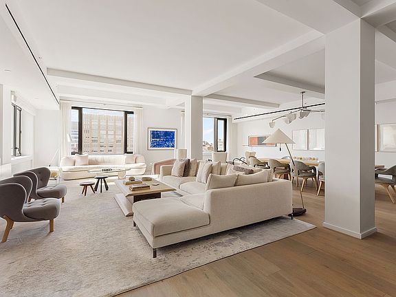 Presenting Residence 9A at 11 Beach Street, a modern and meticulously designed 3,900 square foot loft located in the heart of Tribeca. This expansive home, including its furnishings, has been custom designed by Thomas Juul-Hansen, who was architect of the building's conversion along with BKSK Architects. Every aspect of the home is grand in scale, from the great room, which spans almost 1000 square feet, to each of the three bedroom suites. From the 9th floor, exposures to the south and west offer open city views, with additional windows to the east providing all-day light.