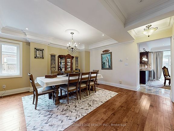 Welcome to this exquisite four-bedroom dream home, featuring over 4,000 sq. ft. of living space in the heart of Wexford. The main floor impresses with a grand foyer, Crown molding & hardwood floor throughout, a combined living and formal dining room with a 9-foot ceiling and bay window, a powder room. Step into grand family kitchen with Custom solid wood cabinets, stainless steel appliances, granite countertop and a breakfast area with walks out to the large backyard. Spaciouce Family overlooks the backyard, gas fireplace large windows for natural light. Solid Oak open-riser stairs leading to the second floor, you'll find spacious 4 bedrooms, hardwood floors throughout, including a primary suite with a walk-in closet and a five-piece ensuite, solid wood vanity plus with a skylight. 2nd bedroom with 3 piece ensuite bathroom, 3rd and 4th bedroom with Jack and Jill bathroom. The professionally finished basement boasts a separate entrance, above ground windows, high ceiling, an oversized bedroom, large functional solid wood kitchen cabinets with a peninsula for breakfast area and living spaceideal for an in-law suite. Long driveway leading to the garage. Enjoy the massive, 60-foot-wide backyard with stone patio, all while being just steps from public transportation, great schools, and shopping, with a short drive to the Don Valley Parkway and Highway 401.