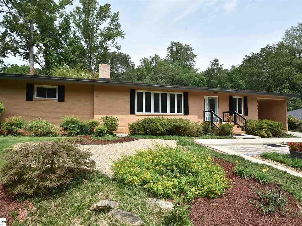 Classic BRICK RANCH in the coveted Lake Forest area with an UPDATED OPEN FLOOR plan and private ACRE lot. You will love the open living spaces that have been created here from the large dining room / living room, into a big open kitchen / den, and past a pool table room to the amazing screen porch overlooking the MANICURED BACK YARD. Plus, a spacious walk-in pantry and laundry were created off the kitchen for extra storage. Chefs will appreciate the plentiful custom cabinets, counters, and kitchen workspace; plus, a large ISLAND new GRANITE and ceramic tile backsplash and UNDERCOUNTER lighting make for a stunning room. The kitchen opens onto a den with built in cabinets, and TV space, with the POOL TABLE ROOM adjacent. Pool table room is quite large and would work well for a sunroom. These rooms have quality laminate flooring that looks great and performs well. Lots of NATURAL LIGHT comes into the pool room, making a for a great ambiance. Take French doors outside or onto a spacious SCREEN PORCH with vaulted ceiling and a wonderful back yard very private with mature trees a great place to relax alone or with guests. Off the pool table room and convenient to the kitchen is the huge WALK-IN PANTRY so much storage here! In this area you will find a walk-in LAUNDRY room with folding counters, plenty of cabinet space and an exterior door bringing in more natural light. An extra fridge or freezer fits easily here. At the front of the home, the formal dining room and living room connect for a very spacious feeling, accented with nice HARDWOOD FLOORING. Lots of casement windows bring in a ton of light and show off the brick fireplace at the end of the living room. Hardwood floors run down the hall and into good sized rooms no carpet in this home. The HALL BATH features updated furniture vanity, lighting, and re-finished tub. MASTER BATH has a large step in shower, granite counter vanity and updated lighting. ORGANIZERS in the closets provide options for storage. Out back there is plenty of storage space with 2 OUT-BUILDINGS. The larger is 8x11 and features power, and a large concrete patio with 11x12 PERGOLA plenty of options here with the concrete slab, it could be converted to a garage. Nice grapevine next to the patio. An additional TOOL SHED is hidden at the left side. Plenty of EXTRA PARKING for your family and guests check out the various pads and turn around areas! New high-quality ROOF system 2020 with new flashing, soffit, and aluminum wrap. New Taylors insulated WINDOWS 2009. Extra attic INSULATION added for energy efficiency. Sewer line to street has been replaced with PVC. TRANE high efficiency gas furnace. Fantastic location close to BJU with quick access to downtown Greenville, and great schools. This gem is ready for you!