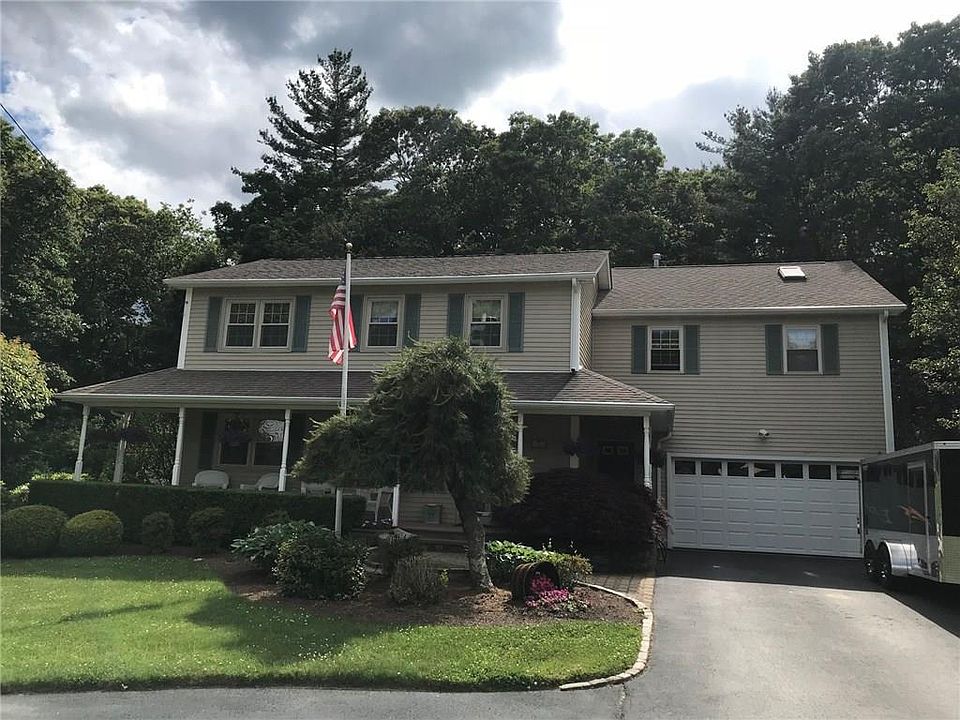 Spacious Colonial -- absolutely gorgeous landscaped lot on private cul-de-sac. Updated kitchen - granite - stainless appliances - coffee station with wine fridge and separate dining area. Beautiful hardwood floors. Three bedrooms plus office. Family room/sun room offers lots of windows, skylights, and woodstove. This room overlooks the pristine yard - huge deck - stone patio and stone walls that abuts woods. Must see to appreciate!! Exquisite master suite, 2 spacious walk-in closets, master bath offers oversize rain shower- Jacuzzi tub and gorgeous tile work. Oversized Heated Garage - finished basement. MUST SEE - It's a GEM!!