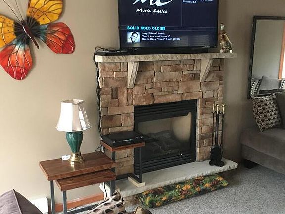 Eat-in kitchenHot tubLarge paved drivewayStone-faced fp