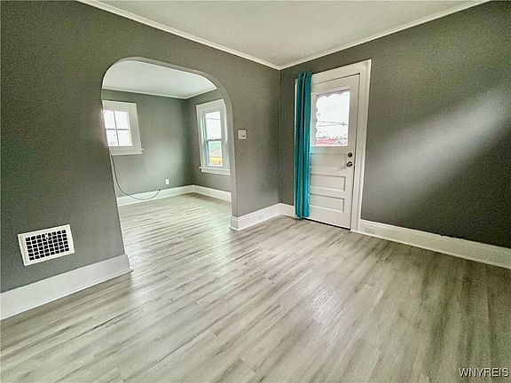 Charming Updated 2-Bedroom Upper Unit with Private Porch & Off-Street Parking. Step into this inviting 2 bedroom, 1 bath upper unit offering a perfect blend of character and modern updates. Enjoy a bright and comfortable living space featuring new flooring and energy efficient replacement windows throughout. The living room flows into a formal dining area ideal for entertaining or everyday living. The updated kitchen comes equipped with stainless steel appliances and plenty of storage. The full bathroom includes a tub/shower combo and a modern vanity with extra storage space. Relax outdoors on your private front porch, or take advantage of convenient off-street parking. Laundry hookups are available in the basement for added ease.