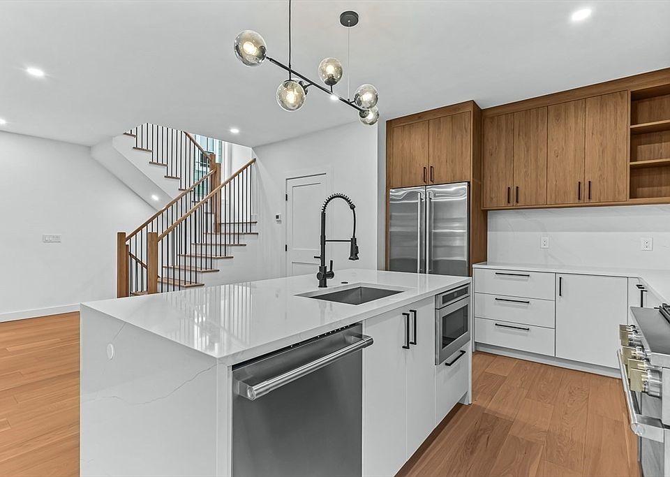 Welcome to 11 Bonner Ave #2, a beautifully designed three-level condo by the Treetop Group in the heart of Medford. This 4 bed, 3.5 bath home features wide-plank hardwood floors, soaring ceilings, and custom finishes throughout. The open main level offers a chef’s kitchen with waterfall quartz countertops and premium appliances, a spacious living area with an electric fireplace, and a built-in storage nook by the entry. Upstairs, the top-floor primary suite impresses with a walk-in closet and spa-like bath with soaking tub, tiled shower, and double vanity. Two additional bedrooms, a full bath, and laundry with custom storage complete the second level. The finished lower level offers a guest suite or home office with a full bath and wet bar. Enjoy a private fenced backyard, exclusive driveway access, and close proximity to I-93 and Assembly Row where there are many shops & restaurants. A perfect blend of style, comfort, and convenience.