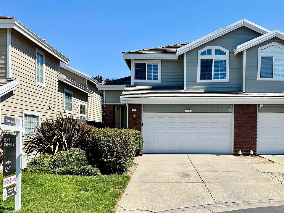 Welcome to this stunning townhome in the desirable Village Parkway Community of Hercules. This inviting two-story residence features vaulted ceilings, a designer color palette, and abundant natural light throughout. The spacious floor plan includes a formal living and dining area ideal for entertaining and everyday comfort. The modern kitchen is updated with quartz stone countertops and all major appliances. Wood flooring was installed in 2017, adding warmth and elegance to the home. A convenient inside laundry, a hallway white cabinet for extra storage, and an attached oversized two-car garage provide functionality and convenience. The garage is further upgraded with LED lighting, a MyQ-compatible opener, and an updated insulated garage door. Upstairs offers three full-size bedrooms, two and a half updated bathrooms, and a loft with an office area perfect for a peaceful and productive workspace. Outside, the rear and side yards have been concreted for easy access, with dedicated gardening space and a working drip sprinkler system. Additional upgrades include central AC for year-round comfort. The community is just a short stroll to public transportation, shopping, banks, and scenic walking and biking paths.