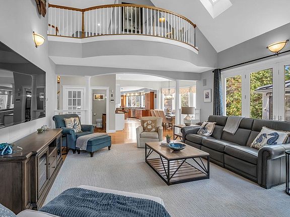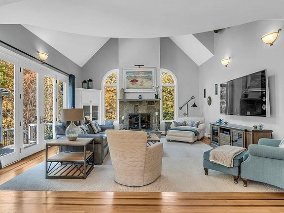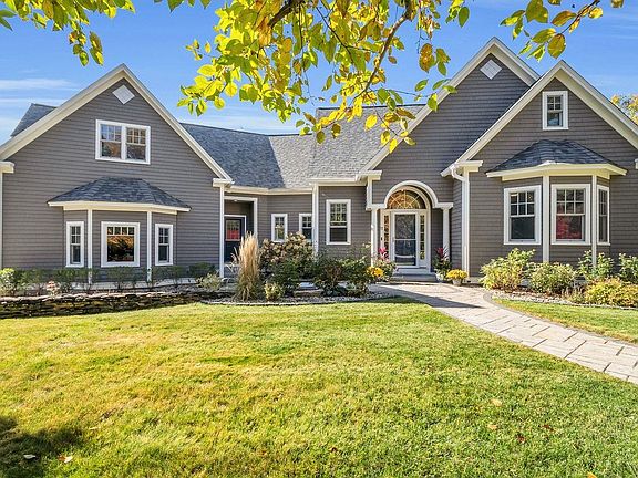 Live in a luxurious four-star resort year-round, where your home becomes the perfect gathering place for family and friends. This stunning 4,000 sq. ft. home, set on over 8 private acres is a short drive from NH beaches & offers year-round enjoyment in every season. The expansive kitchen, with large windows overlooking the backyard, includes a center island, double ovens, and a coffee bar. The dining room, open to the soaring living room with its two-story stone fireplace, is perfect for large gatherings. A first-floor office provides privacy when needed. Upstairs, the primary suite features a custom walk-in closet and luxury bath along with 2 additional lg bedrooms, a cozy loft, another full bath, a laundry area. The walkout lower level offers a guest bedroom, bath, exercise room, wine cellar, bar, a second laundry room, and a family room that opens to the outdoor living space. Outside, an outdoor kitchen with a fridge, gas grill, lobster pot burner, and raised fireplace is perfect for entertaining. The expansive patio offers seating and dining areas, while heated tiles lead to a hot tub, keeping you cozy in winter. The saltwater pool, with a waterfall and large deck, rivals a luxury resort. A treehouse-style screened gazebo, accessible from the deck, overlooks the wooded, up-lit grounds, enhanced by a Sonos sound system. Expansive lawn areas invite friendly games & outdoor fun. Call agent for all showings.