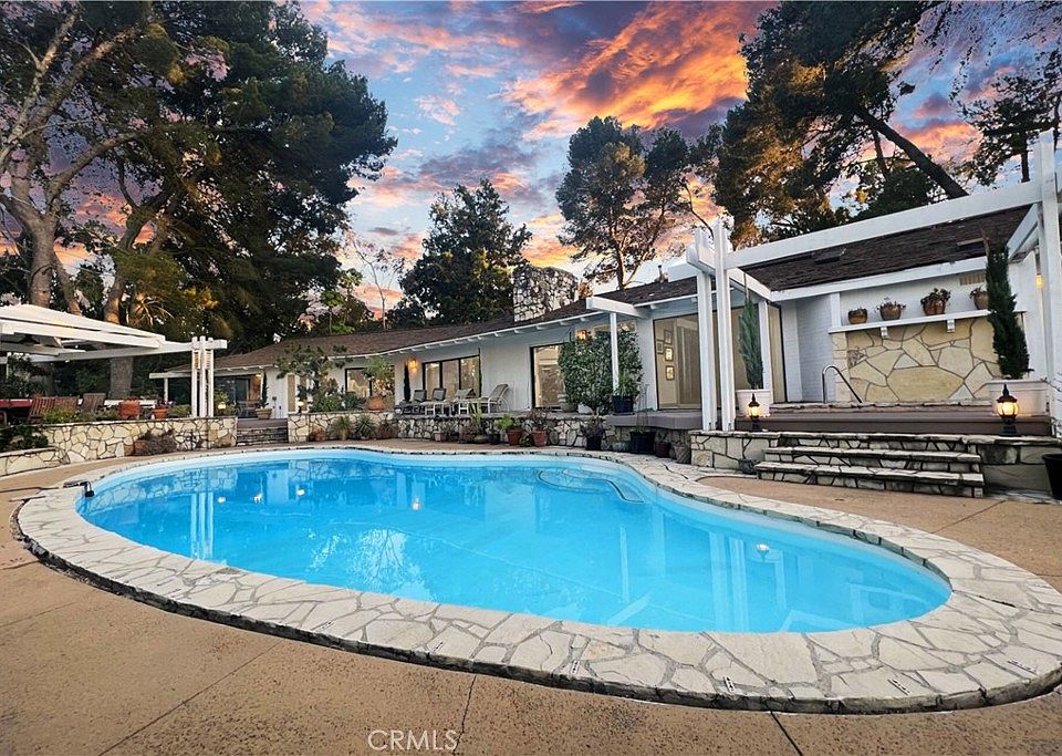 Uncover an extraordinary opportunity in the prestigious gated city of Rolling Hills! Nestled on a private cul-de-sac, this stunning single-level ranch home invites you into a world of elegance and breathtaking views. Prepare to be captivated by its open floor plan, perfect for entertaining, and seamless indoor/outdoor transitions that showcase the cityscape and the renowned Queens necklace. Thoughtfully designed, this remarkable residence boasts 5 spacious bedrooms, 4 bathrooms, finished garage, laundry room, a generous library, and a sparkling pool, all on a lushly landscaped 2.44-acre lot. Every corner of this bright and airy home offers privacy and pockets of mesmerizing views. Step through the entrance and be greeted by soaring vaulted ceilings, exquisite wood floors, three fireplaces, and floor to ceiling windows, meticulously crafted by prominent South Bay interior designer, John Fleming. Journey down the hallway, where you'll find three additional bedrooms, leading towards the primary suite. The primary suite is a sanctuary offering ocean and city views, including the Queen's necklace, large closets, and a his and her showcase bathroom with a Japanese Zen Garden, creating a tranquil oasis for your daily routine. Returning to the other side of the house, prepare to be enthralled by the custom kitchen overlooking a delightful garden atrium. Granite counters, a double oven, built-in refrigerator, and more await the culinary enthusiast. With plenty of room to reconfigure or expand, the possibilities are endless. When it's time to unwind, indulge in the pleasures of the pool, spa, and oversized pergola, perfect for al fresco BBQs. Conclude your day with a blissful retreat in the private sauna or lose yourself in your personal library, surrounded by the awe-inspiring landscaping that embraces the home. Step outside into an idyllic oasis, featuring a grand Koi Pond, mesmerizing waterfall, themed Italian and Spanish gardens that lend themselves to enchanting weddings and parties, bountiful fruit trees, and captivating water fountains. Let the kids explore the real-life treehouse with a whimsical rope bridge and 2.5 Miles of meandering paths and trails on the property. Rolling Hills offers the utmost exclusivity with 24/7 guarded access, miles of scenic hiking and horse trails, and lighted tennis courts. Not to mention the award-winning Palos Verdes Schools. This extraordinary Rolling Hills home truly has it all, and it's waiting for you to make it your own.