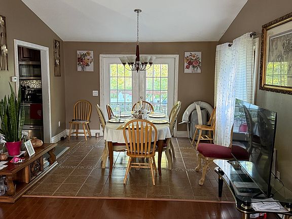 This stunning 4-bedroom, 2-bath split-level home sits gracefully on over a half acre of land, offering both privacy and space to enjoy outdoor living. Inside, you'll find an inviting open floor plan highlighted by cathedral ceilings that create a bright and airy atmosphere. The kitchen is beautifully appointed with stainless steel appliances and ceramic tile flooring that flows seamlessly into the dining room. From here, French doors open onto a rear deck-perfect for entertaining or relaxing while enjoying the view. Hardwood floors throughout the main living area add timeless elegance, while the ceramic tile in the kitchen and dining room ensures both style and durability. The combination of modern features and classic design makes this home as functional as it is appealing. With its spacious layout, lower level family room, updated finishes, and generous lot size, this property is a must-see for buyers seeking comfort, convenience, and charm.