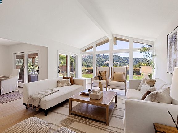 Beautiful single-level home on a fabulous third- acre offering a welcoming place to call home w/ a dramatic view of the picturesque chapel bell tower on the St.Mary’s College against a backdrop of Moraga’s Hills. Located in prestigious Bluff’s neighborhood w/ privacy & a peaceful setting. Andersen sliding French doors open to an amazing, ultra-private outdoor sanctuary where you can enjoy the incredible views from the spacious brick patio w/ built-in bench seating under the pergola, on the trex deck, or relish the picturesque gardens. There is plenty of room to entertain on every scale, play & relax. Behind the front garden, an inviting porch & double door entry is an open, light-filled floorplan. A wall of windows echoes the pitch of the vaulted ceiling in the formal living room featuring fireplace & hardwood floors. The bright kitchen enhanced w/ recess lighting, tile counters, plus a large breakfast room w/ built-in cabinetry & adjacent to a mud room & powder room. “Enjoy the view from the window over the sink” plus the wonderful great room for quiet evening, family fun or larger entertaining. A rare combination of amazing yard, beautiful house, top schools & desirable Bluff’s location!